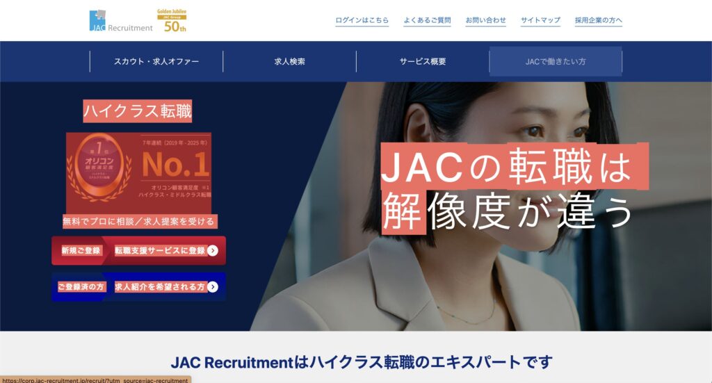 もっともおすすめの転職エージェントは『JACリクルートメント』