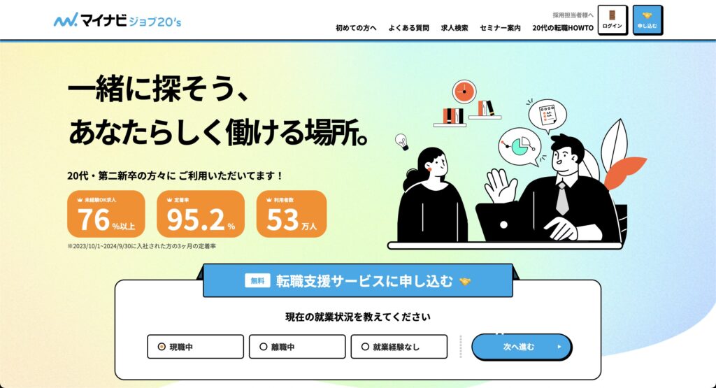 20代・第二新卒特化の『マイナビジョブ20’s』