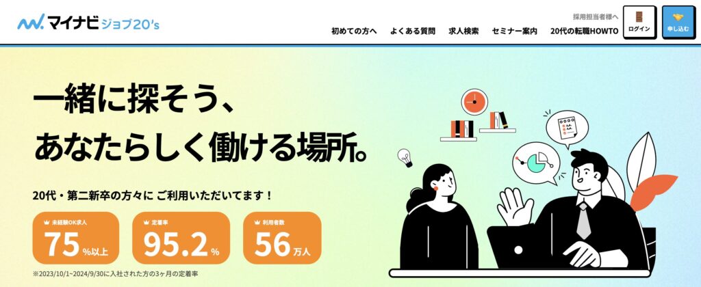マイナビジョブ20’sは、20代・第二新卒の転職支援に特化した信頼性の高いエージェント
